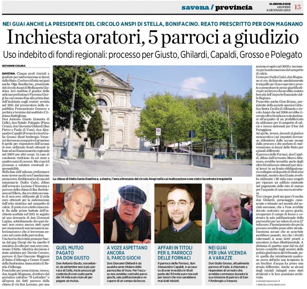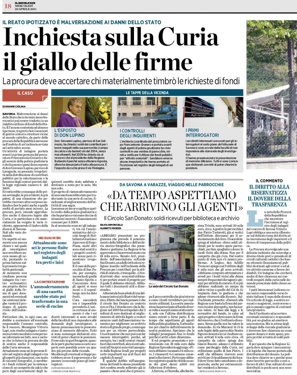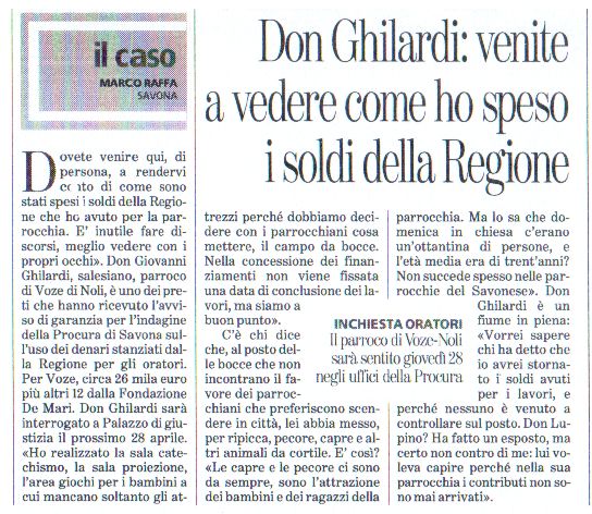 LA STAMPA 19 GIUGNO 2011 – DI FATTO HA CONTINUATO A CELEBRARE MESSA ANCHE A VOZE, OLTRE CHE A MAGNONE E VEZZI PORTIO