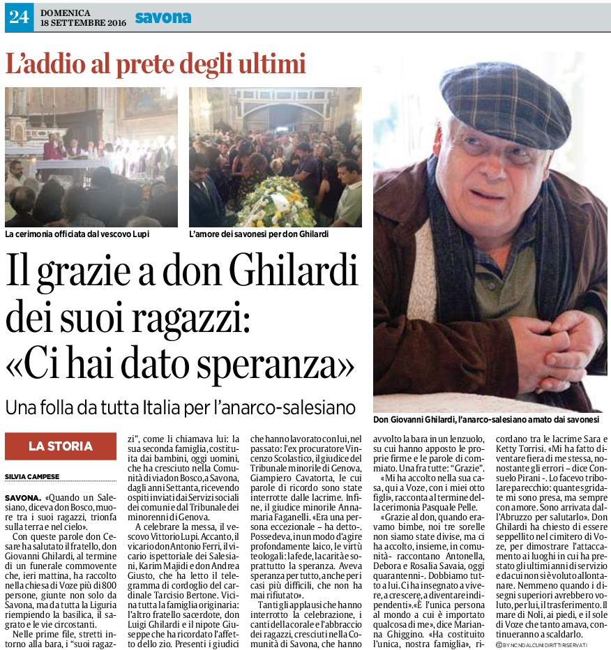 Il quotidiano “La Stampa” di domenica 18 settembre, a firma [S.C.] scrive “Oltre 800 persone ieri ai funerali di Don Ghilardi“. Ottocento persone che hanno presenziato alle esequie, stipando, fino all’inverosimile, la Chiesa di Voze, il Sagrato e le vie adiacenti.