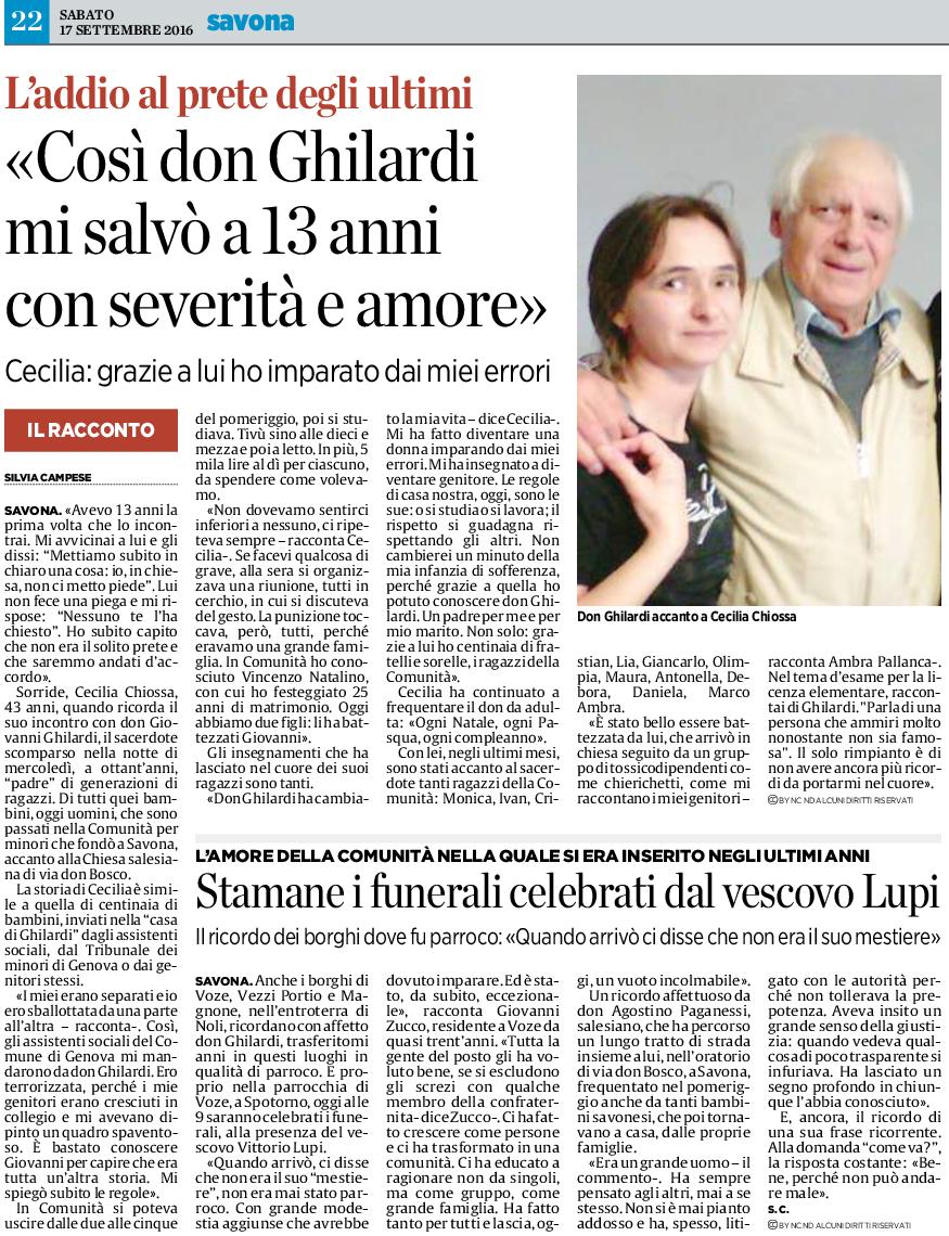 Don Giovanni Ghilardi era nato a Camaiore (Lucca) il 18 aprile 1936 ed era stato ordinato presbitero nel 1963. Apparteneva alla congregazione fondata da San Giovanni Bosco, punto di partenza di una missione verso i giovani, che ha lasciato in città un segno duraturo. Pur rimanendo sempre salesiano, appartenenza a cui teneva moltissimo, divenne parroco della comunità di Voze, di Vezzi Portio e Magnone, nell’entroterra di Noli.
