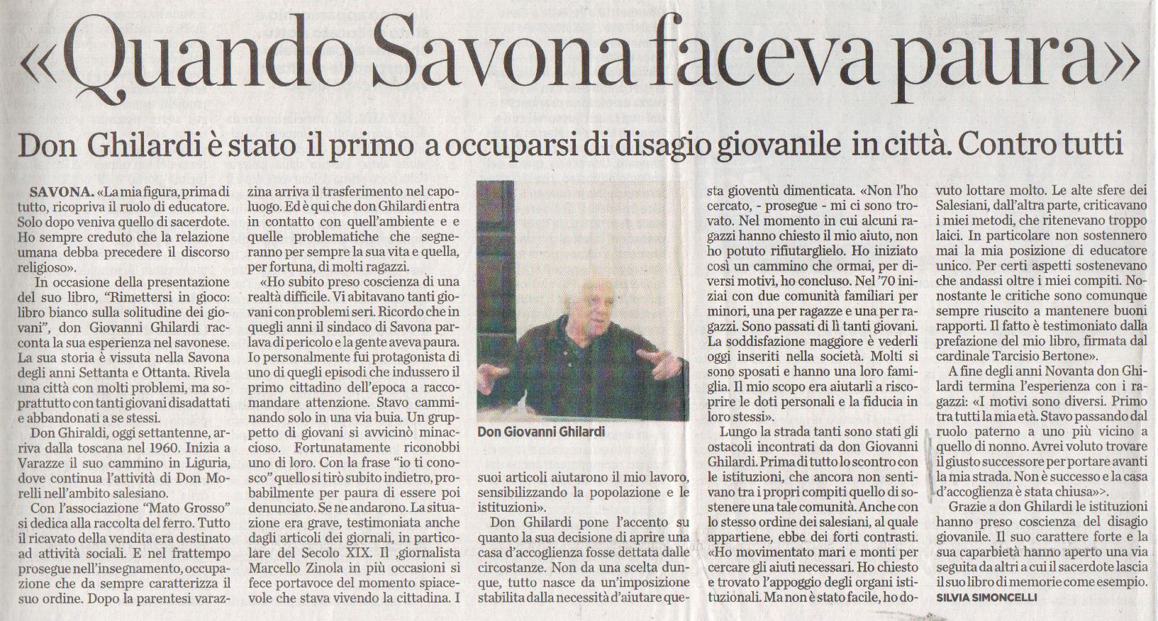 Una vita per aiutare gli altri quando ‘Savona faceva paura’. Un carattere forte e caparbietà gli hanno permesso di superare i giorni difficili, dolorosi. Il ‘pestaggio’ mediatico di un’inchiesta, un’imputazione, titoli e locandine. Infine un’assoluzione liberatoria, con la grave malattia ormai al capolinea. Don Giovanni sempre a fianco dei ragazzi di strada, disadattati e che grazie al suo aiuto materiale, morale, educativo sono usciti dal tunnel della droga, del carcere. E’ stato il primo, a Savona, ad occuparsi del disagio giovanile in città. Contro tutti o quasi. Una storia di successi ed insuccessi come testimonia il libro che ha scritto: ‘Rimettersi in gioco’. Trucioli.it riproporre alcuni momenti significativi della figura e dell’opera del ‘prete di strada’. Con la nota di cronaca introduttiva di un parrocchiano.