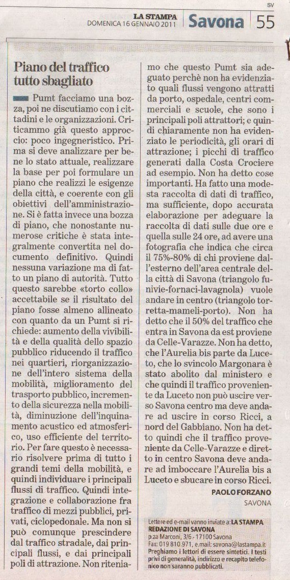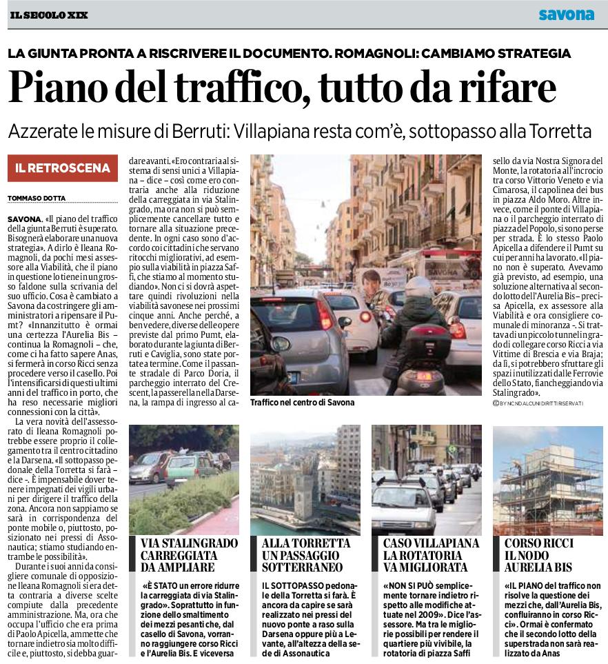 Era il 16 gennaio 2011. Nella rubrica dei lettori de La Stampa la lettera dell’ing. Paolo Forzano: Piano del traffico tutto sbagliato. Domenica 2 ottobre 2016, trascorsi quasi sei anni, l’articolo del Secolo XIX che annuncia la bocciatura del ‘piano’ ricevuto in eredità dalla giunta Berruti. Ieri e oggi cosa è cambiato ? Cosa è rimasto ? Quali le linee maestre ?