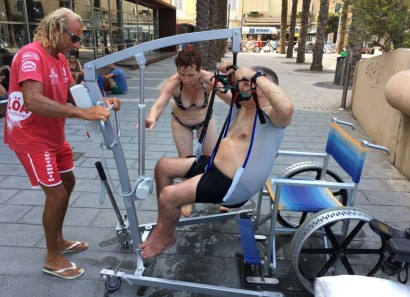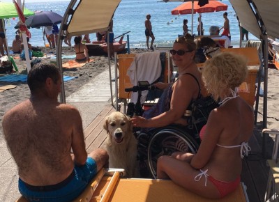 “Le persone con mobilità limitata – spiega il bagnino Luca Olmi che si occupa del servizio – non possono utilizzare i lettini comuni perché troppo bassi. Abbiamo quindi attrezzato l’area con lettini alti come le carrozzine. Questo permette alle persone con disabilità, in piena autonomia, non avendo il dislivello, di passare tranquillamente dalla sedia al lettino e viceversa. Attualmente possiamo ospitare fino a tre persone. Tutto ciò è stato possibile grazie alla disponibilità del gestore della spiaggia che ha rinunciato ad un’area attrezzata con i lettini e ombrelloni a favore di questo servizio e a una donazione da parte di una persona che vuole rimanere anonima. Grazie alla donazione abbiamo acquistato i lettini e un sollevatore che ci consente di spostare in sicurezza le persone su una speciale carrozzina “sedia job” con la quale è possibile raggiungere i mare e fare il bagno. Terminato il bagno è disponibile la doccia in cabine attrezzate per i disabili”.