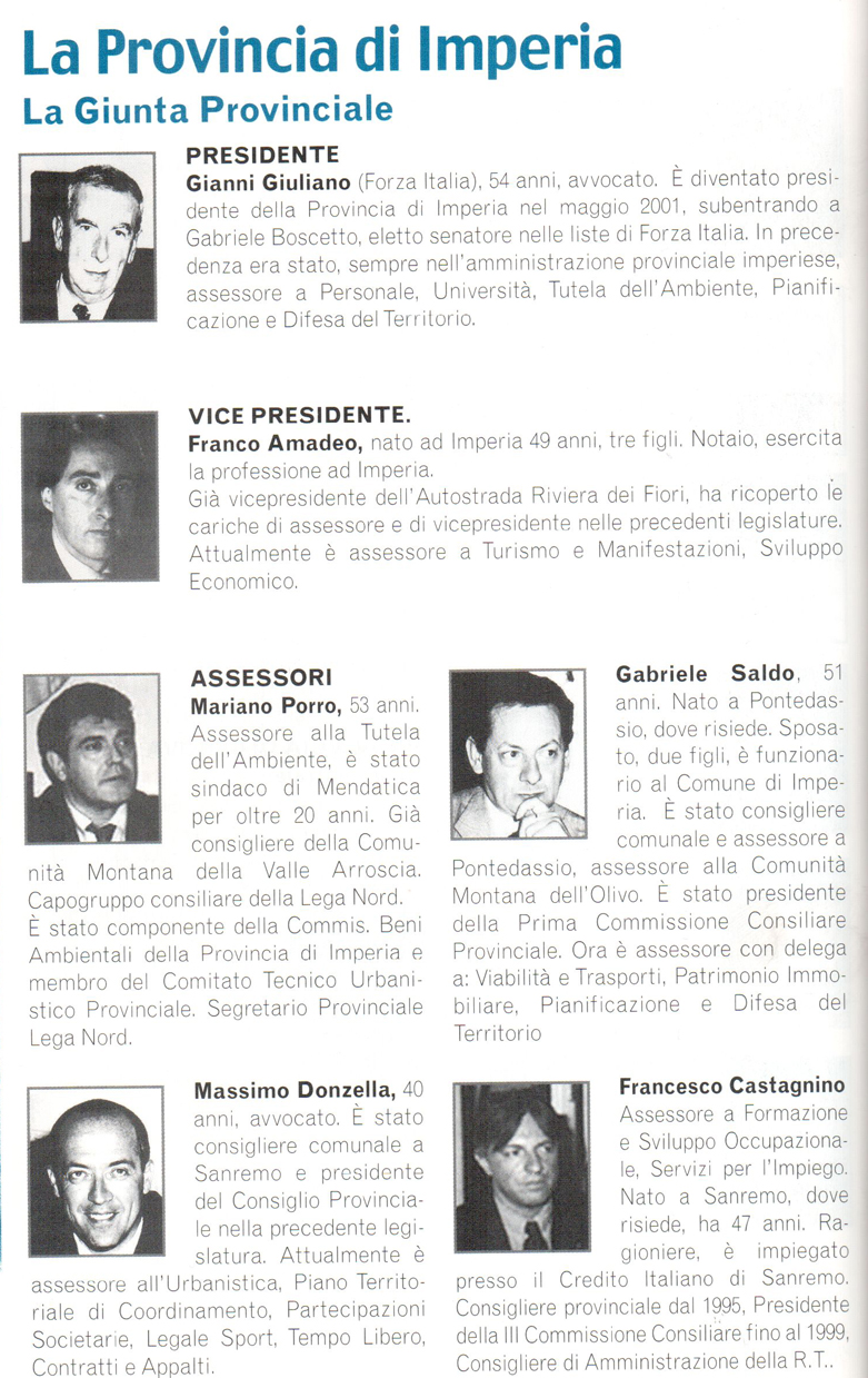 L’AMMINISTRAZIONE PROVINCIALE DI IMPERIA NEGLI ANNI DELL’ASSESSORE GABRIELE SALDO