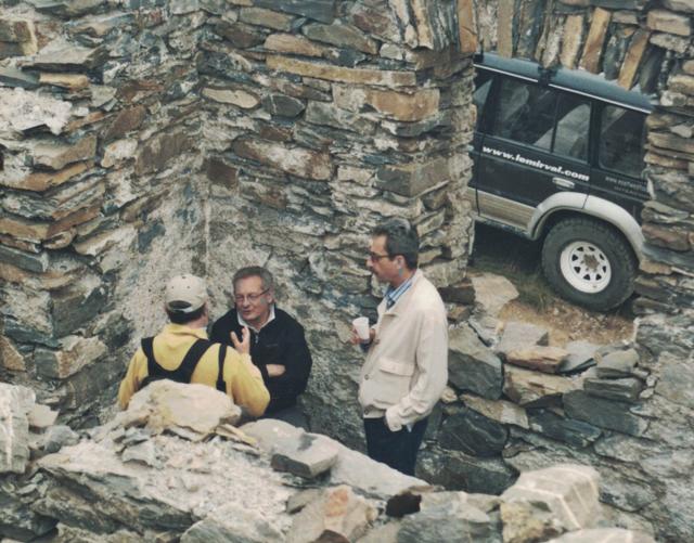 Gabriele Saldo in una foto dell’archivio trucioli del 2009, alla festa sul Saccarello, mentre appartato riceve in un singolare rudere di guerra un elettore che voleva parlargli
