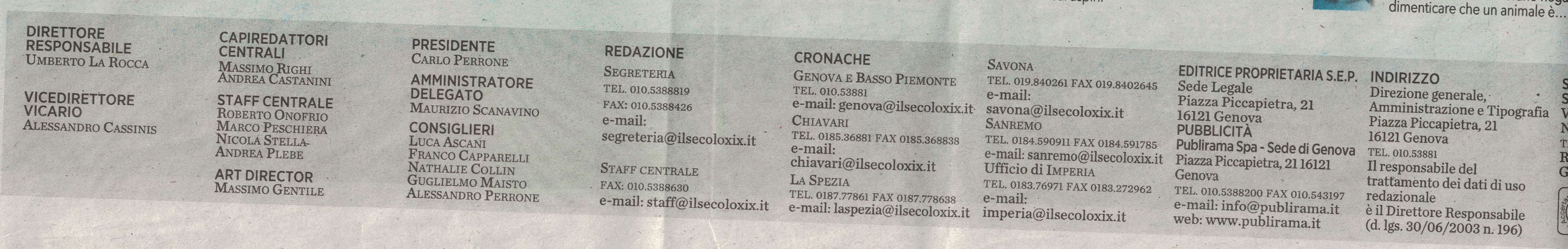 Domenica 24 agosto 2014 l’editoriale di commiato dal Secolo XIX dopo cinque anni di direzione. Ora per Umberto La Rocca, 58 anni, la ‘guida’ della redazione del Corriere della Sera di Torino. Una ventina di pagine destinate al capoluogo e alla regione. Una ‘sfida’ ai contenuti, alle copie, alla corazzata storica La Stampa e la Repubblica che con Il Secolo XIX (si ritaglia uno spazio nel Basso Piemonte ) fanno ormai parte della galassia editoriale del gruppo De Benedetti. Il direttore La Rocca aveva lasciato il quotidiano ligure ricordando “le inchieste pubblicate, prima fra tutte quella che denunciava gli affari sporchi della Lega, e che hanno restituito al giornale credibilità e prestigio nazionali”. E l’orgoglio, aggiungeva, “di aver conservato le proprie quote di mercato, intraprendendo un percorso di risanamento finanziario e imboccando con decisione la strada della multimedialità”. Vedi l’articolo completo a fondo pagina.