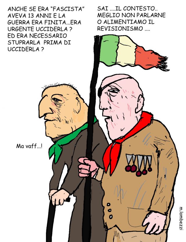 Nell’esprimere giudizi e sentenze, costoro magari dimenticano che c’è ancora gente come il sottoscritto, classe 1934, che simili vicende le ha vissute oltre che sofferte, e, ben memorizzate, le ha ricordate il 25 aprile 2015: Trucioli.it “Noli, una finestra sulla piazza” (vedi….). Le ho ricordate, dopo settantanni, a futura memoria, senza enfatizzarle; proprio per riproporle come i tanti testi scritti sulle ultime nefandezze commesse da entrambe le parti, compreso la disumana storia di Giuseppina.