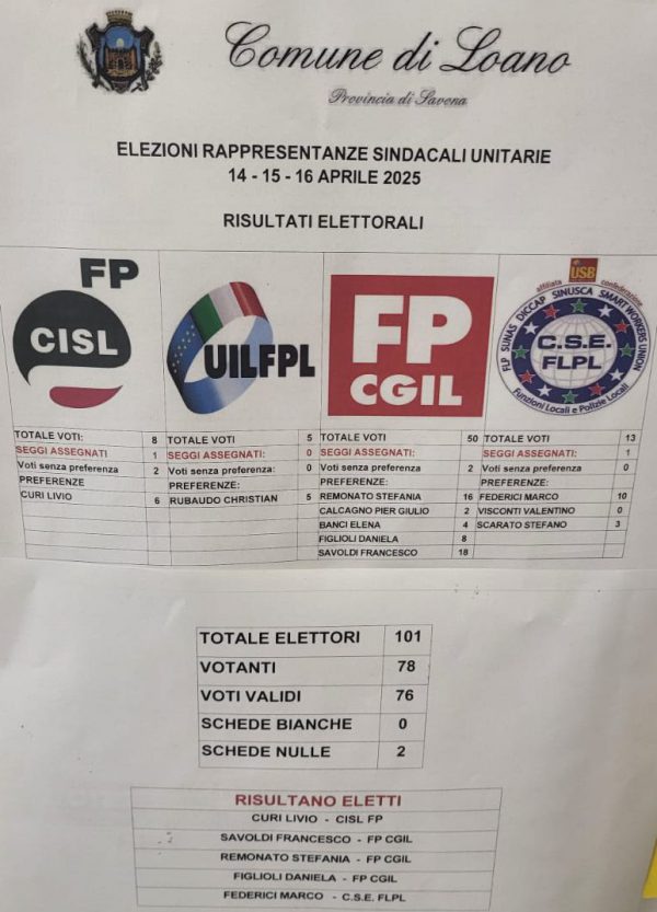 3/GLI ELETTI E I VOTI PER LA RSU DI LOANO