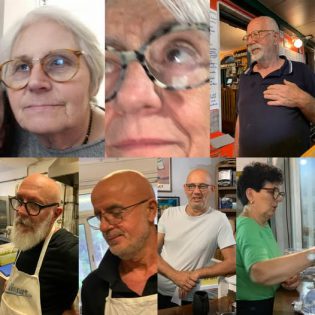 In sala girano le donne di casa e i camerieri (chiamiamoli così?) dai modi spicci e collaudati. L’organizzazione è quasi perfetta. Poche attese e via: una lista scritta di proposte “banalmente” coerenti con le aspettative di questo Ponente, più di terra che di mare: antipasti, primi, secondi, dolci (l’elenco lo trovate – ovviamente – anche in rete). Fino a qualche anno fa c’era il pane alle olive (con i noccioli); ora è alle erbe “perché – sostiene Zorro ridacchiando – abbiamo pagato troppi denti spezzati, nonostante sul menu ci fosse l’avvertimento”. Famigliole con la vecchia nonna, figli o nipoti con i propri vecchi (clienti affezionati da decenni), coppie giovani e meno giovani con o senza bimbi, compagnie di amici, intellettuali, operai, impiegati, contadini, ricchi, poveri e via dicendo.