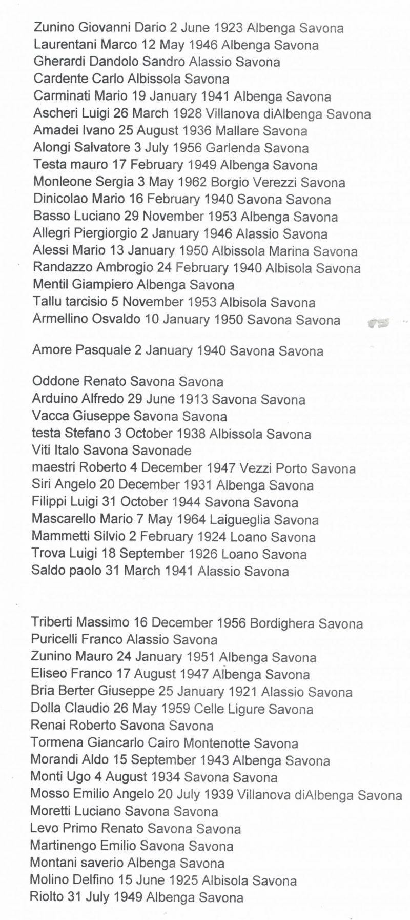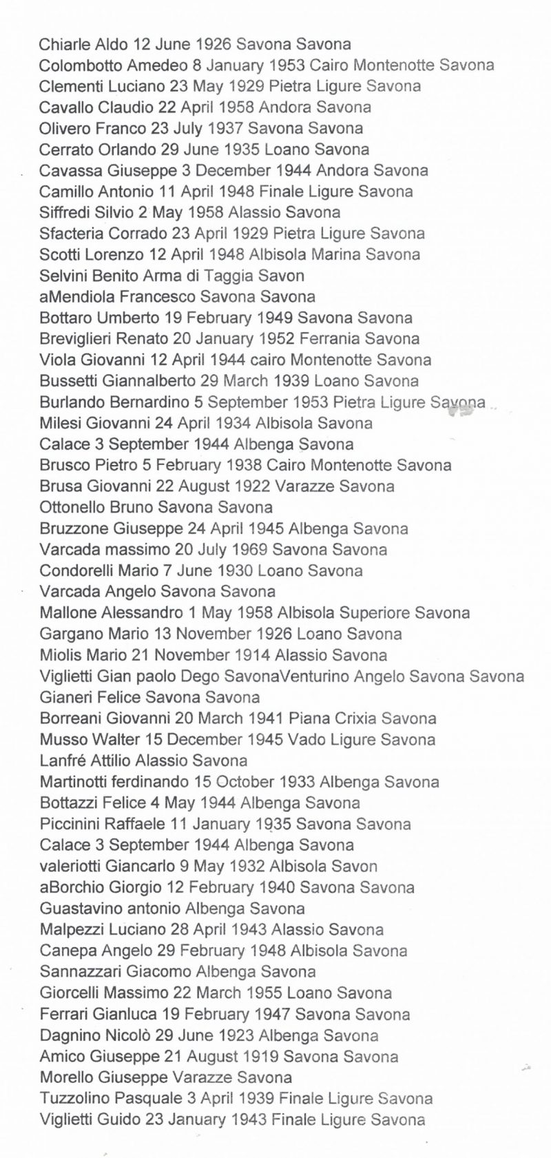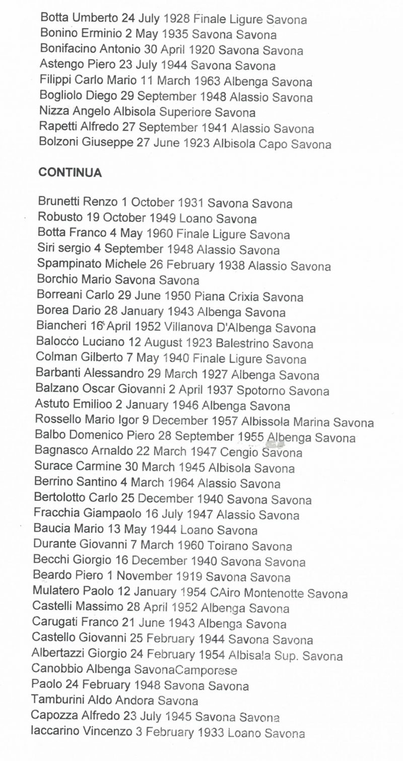 UN ELENCO CHE NON VUOLA ADDITTARE COME FECCIA QUANTI RISULTANO CON NOMI E COGNOMI. SI TRATTA DI 184 ‘FRATELLI’, ALCUNI NON PIU’ IN VITA, ALTRI IN SONNO, OVVERO HANNO ABBANDONATO LA ‘LOGGIA E I SUOI RITIA’ MA IL GIURAMENTO DI ‘SEGRETEZZA’ RIMANE A VITA.