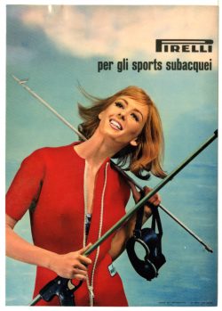 Il fucile subacqueo. Lo comprai di nascosto da mio padre, bruciai tutti i miei risparmi, e non sono certo che avessi già compiuto i sedici anni. Lo nascondevo in cantina, era un Pirelli a molla 140, per me fu l’emancipazione, ero diventato grande. Cerco su Internet, ma trovo poco, e ricorro alla gentilezza della Dottoressa Mila Forlani della Fondazione Pirelli che mi fornisce delle foto illustrative dell’epoca. Come dice il nome era un fucile a molla lungo 140 centimetri, e Noli e i suoi fondali si prestavano alla perfezione per il suo uso. Niente barche di appoggio e boe di segnalazione, praticamente si rispettava solo l’apnea, allora le bombole non si sapeva neppure cosa fossero, spero che tutti i miei delitti di allora siano caduti in prescrizione.