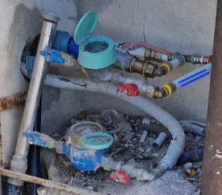 Attualmente, il rubinetto installato sulla linea dell’acquedotto prima del contatore dell’acqua della Levy, come si nota, è ancora “piombato”; a pochi centimetri di distanza si vede il tubo dell’impianto antincendio “tappato”, in attesa di essere definitivamente connesso alla linea dell’acquedotto. (foto 2)