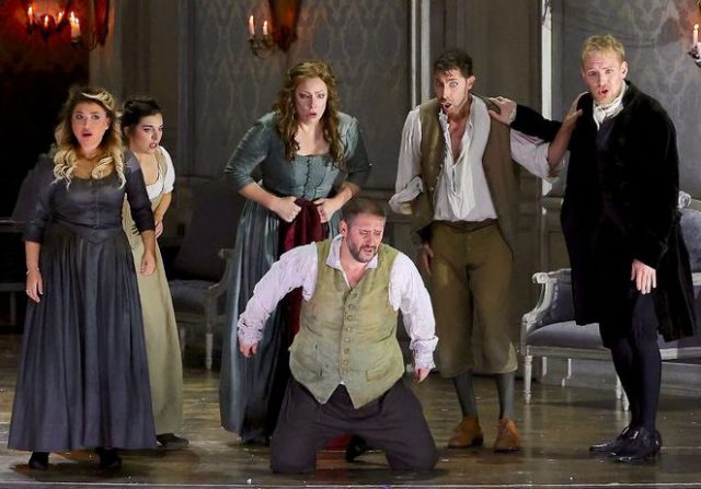 Tanto più avendo davanti agli occhi la pluripremiata regia di Damiano Michieletto, ripresa per l’allestimento genovese da Elisabetta Acella. Una regia che, per quanto cominci ad accusare il peso dei suoi quindici anni di vita, e nelle soluzioni scenografiche (di Paolo Fantin) alimenti un senso di claustrofobica pesantezza, nondimeno vanta ancora diverse frecce nella faretra, soprattutto nell’approfondire le relazioni psicologiche tra i personaggi costruendo la drammaturgia sul potere dominante del libertino, dalla cui vorace personalità tutti – eccetto la Legge ultraterrena del Commendatore – sono soggiogati, perché solo grazie a lui trovano un ubi consistam. Geniale ed icastica, in questo senso, la lettura che Michieletto fa del finale “morale” dell’edizione praghese: non il lieto fine imposto dal genere “dramma giocoso”, bensì la definitiva resa dei conti degli attori della vicenda ai quali, con la morte di Don Giovanni, vengono recisi dallo stesso libertino i filo che, a mo’ di burattini, li legavano indissolubilmente a lui e senza i quali anch’essi perdono vita.