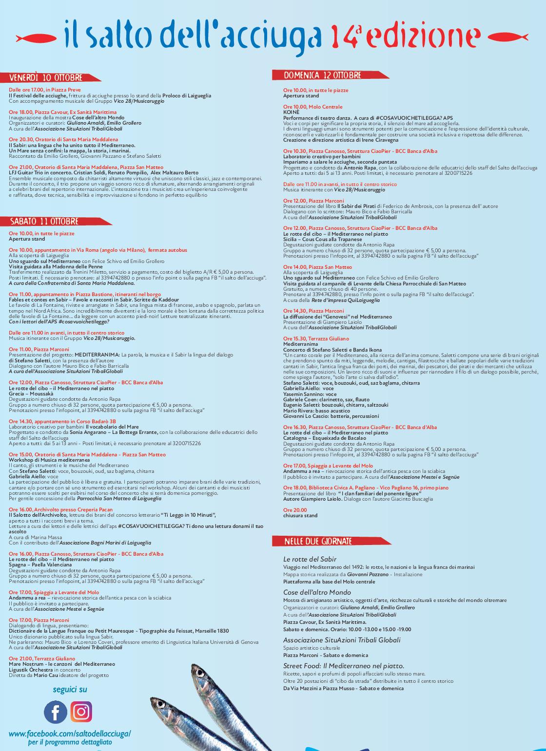 Saranno tre giorni di sorprese e curiosità, il programma completo e la prenotazione degli eventi a numero chiuso sono disponibili sulla pagina FB “il salto dell’acciuga”.