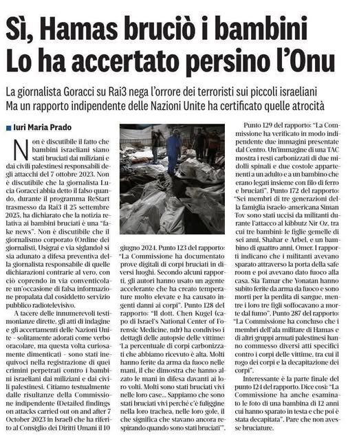 “Dov’erano i Pro-Pal e gli attivisti di sinistra quando i terroristi di Hamas bruciarono i bambini israeliani?”2/PresaDiretta Rai:’La fame usata come arma di guerra. Il traffico di armi dall’Italia a Israele”. 2/Vedi anche vignetta settimanale del prof.Umberto Padovani.