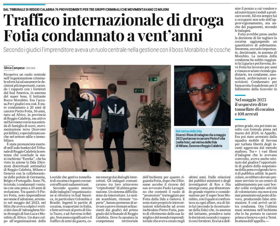Pietro Fotia. Un articolo del Secolo XIX del 3 ottobre 2025 a firma di Silvia Campese. Fotia che per anni era stato ‘tallonato’ da Luciano Corrado al quale aveva concesso, nel 2009, la sua prima intervista. A Fotia un candidato in Regione, tramite un concessionario d’auto di Albenga, chiese i voti.
