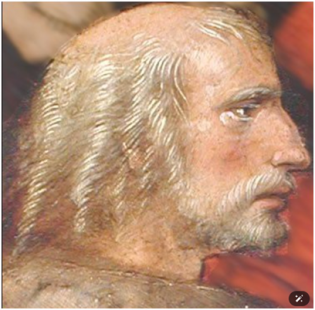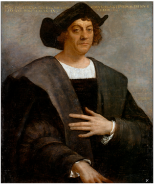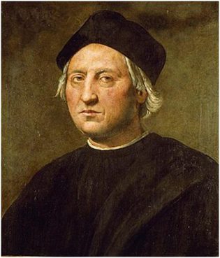 Nel capitolo III de “LE HISTORIE DELLA VITA E DE FATTI DI CRISTOFORO COLOMBO PER D. FERNANDO COLOMBO SUO FIGLIO” pubblicate a Venezia MDLXXI (1571). Fernardo, nato nel 1488, a soli quattordici anni, nel maggio del 1502 accompagnò il padre nel quarto viaggio oltre Oceano e in merito all’aspetto del’illustre navigatore così si esprime: ” L’Ammiraglio fu uomo di ben formata e più che mediocre statura, di volto lungo, e di guance un poco alte, senza che declinasse a grasso, o macilento. Aveva il naso aquilino, e gli occhi bianchi, bianco, e acceso di vivo colore. Nella sua gioventù ebbe i capelli biondi, benché giunto che fu a’ trent’anni, tutti gli divennero bianchi“.