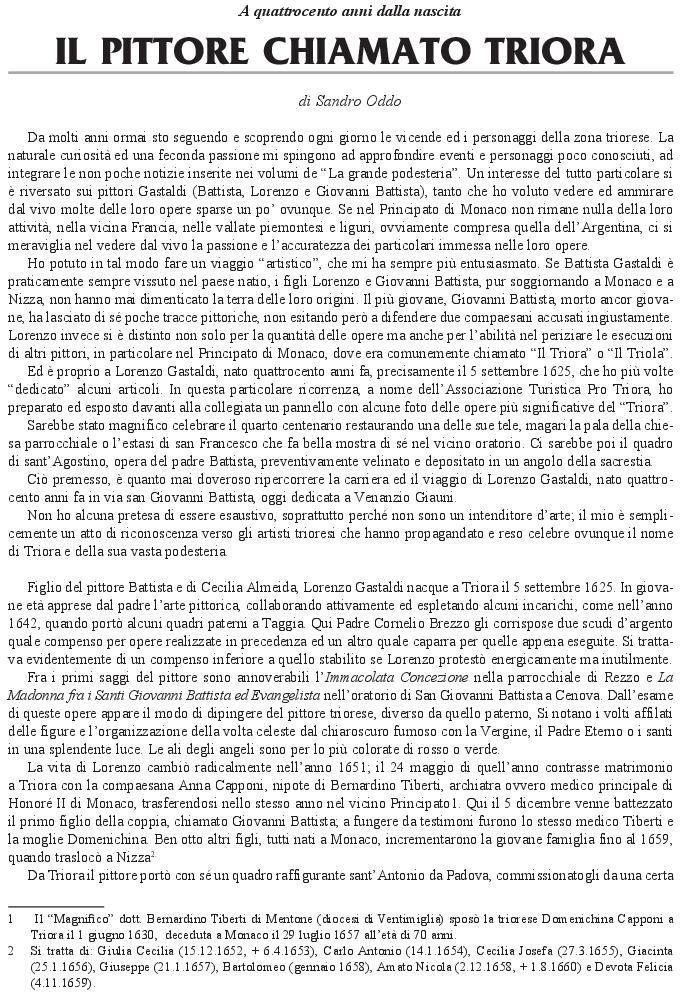 Passione, dedizione e impegno. Sandro Oddo ha scritto per ‘Le Stagioni di Triora’ un articolo approfondito e documentato alla scoperta di personaggi trioresi poco conosciuti o dimenticati. E’ il caso dei Gastaldi (Battista, Lorenzo e Giovanni Battista).