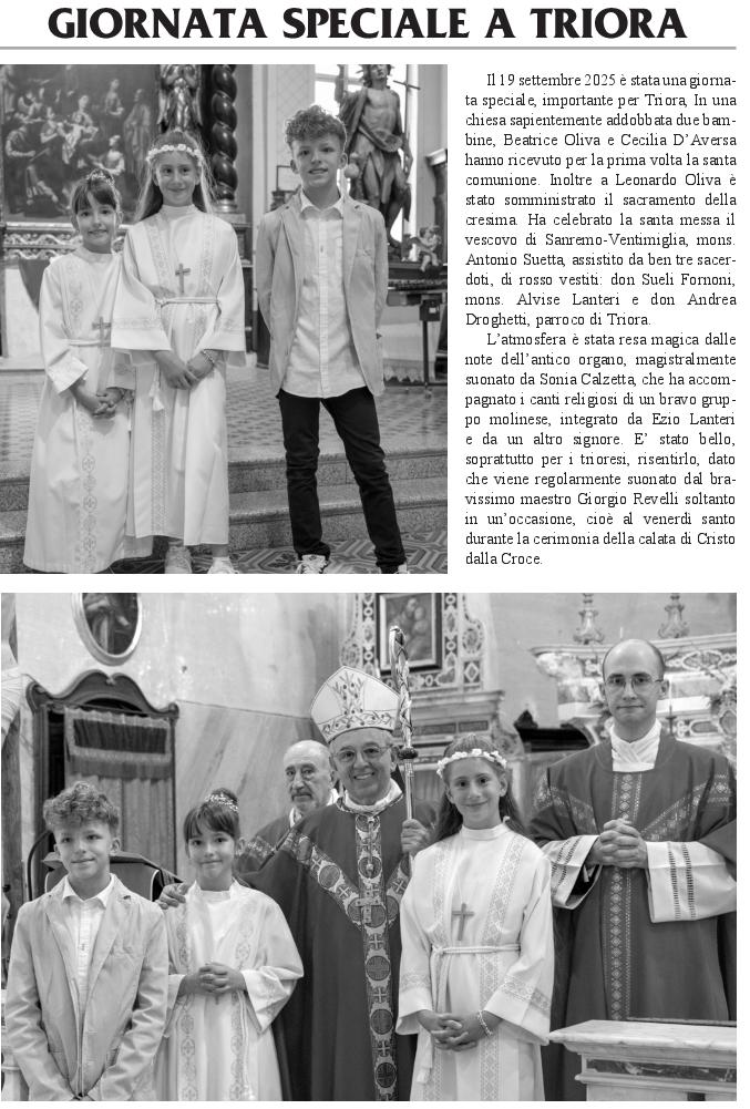 LA GIORNATA DELLA CRESIMA E COMUNIONE PER 2 BAMBINE E UN RAGAZZO. LA PRESENZA DEL VESCOVO ANTONIO SUETTA