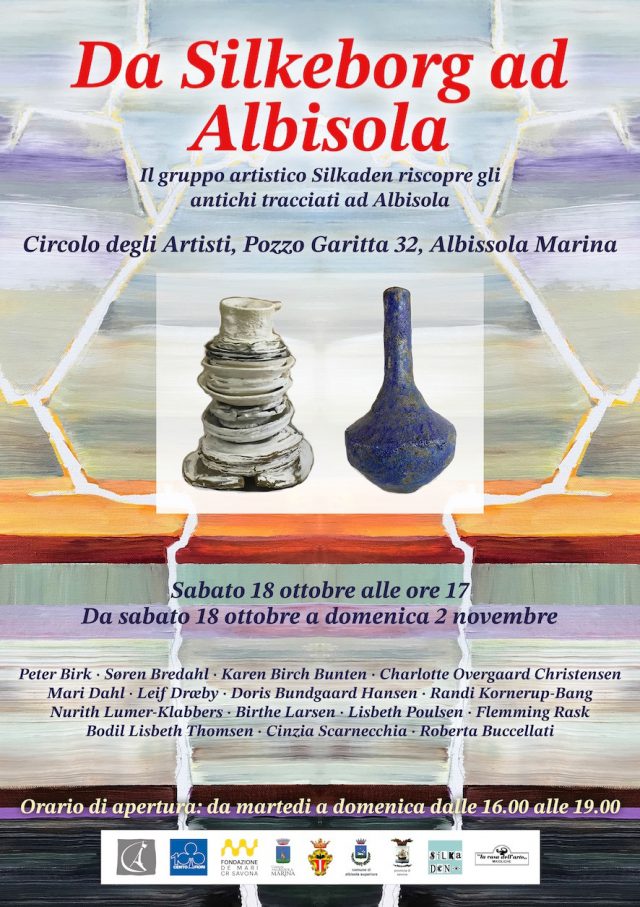 E’ la mostra “Da Silkeborg ad Albisola. Il gruppo artistico Silkaden riscopre gli antichi tracciati ad Albisola” inaugurata Sabato 18 ottobre ad Albissola Marina, al Circolo degli Artisti, in Pozzo Garitta, e visitabile sino a Domenica 2 novembre. In un ideale “ponte poetico tra la compostezza nordica e la vitalità mediterranea”, che va ricevendo consensi ed apprezzamenti, sono proposte le opere di tredici artisti di Silkaden, Peter Birk, Soeren Bredhal, Karen Birch Bunten, Charlotte Overgaard Christensen, Mari Dahl, Leif Draeby, Doris Bundgaard Hansen, Randi Kornerup-Bang, Nurith Lumer-Klabbers, Birthe Larsen, Lisbeth Poulsen, Flemming Rask, Bodil Lisbeth Thomsen, e delle artiste genovesi Roberta Buccellati e Cinzia Scarnecchia.