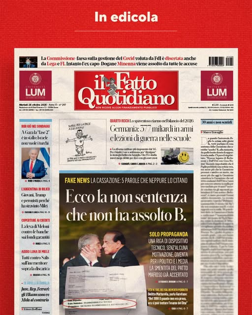 LA PRIMA PAGINA DE ‘IL FATTO QUOTIDIANO’