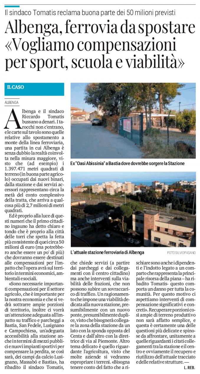 ARTICOLO DEL SECOLO XIX- DICHIARAZIONI DEL SINDACO TOMATIS-