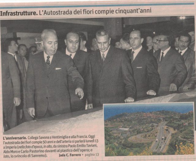Intanto era partita la costruzione della Ventimiglia -Savona, col primo cantiere inaugurato nel 1965 a Ventimiglia, dal ministro genovese Paolo Emilio Taviani.