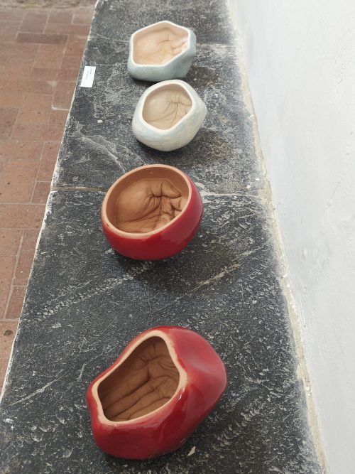 Il verbale della Giuria evidenzia che “le ciotole di Kristina Cela nascono da un contatto reale con il corpo. Il calco della mano inserito all’interno della forma trasforma un gesto quotidiano in struttura. I risultati sono forme radicate nell’essere umano ma il processo resta nuovo nel campo della ceramica”. A proposito dell’opera di Irene Finocchiaro nel verbale della Giuria si rileva che “nei suoi lavori organi e frammenti del corpo vengono modellati con grande precisione. La rifinitura, la coerenza dei soggetti e la qualità della superfici rivelano una padronanza tecnica solida. Le opere pur ancorate al corpo assumono una presenza autonoma fuori del tempo”. La Giuria del “Premio”, presieduta da Annamaria Pacetti, era composta da Tino Canepa, Simona Poggi, assessore alla Cultura del Comune di Albisola Superiore, Gianluca Nasuti, sindaco di Albissola Marina, Fabio Tasso, Massimo Trogu. Assieme a loro era intervenuta all’inaugurazione della mostra, l’8 novembre, Nicoletta Negro, assessore alla Cultura del Comune di Savona e vice presidente dell’Associazione Italiana Città della Ceramica.