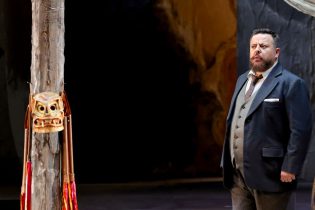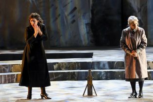 La regia di Teatrialchemici, alias Luigi Di Gangi e Ugo Giacomazzi, è tornata al Carlo Felice dopo il suo esordio nel 2019 con altro cast vocale. Una Sicilia archetipica, con sagome essenziali ad evocare le case e la chiesa, ed al centro un abbozzo – un semicerchio a due scalini – di antico teatro greco, come se le vicende di Turiddu e Santuzza fossero copioni di una tragedia eterna, affidata a personaggi più stereotipati che reali, in un tempo sospeso tra riti sacri e coreografie profane, e in ambienti dove le simbologie cristiane s’intridono di maschere pagane. In una rilettura di così denso simbolismo “steccava”, nella scena finale, l’irruzione di Alfio macchiato di sangue e col pugnale in mano. Un effettaccio che, a suo tempo, Giovanni Verga aveva stroncato in un allestimento in prosa di Cavalleria del discepolo Giovanni Grasso, tanto da fargli ritirare il copione. Non era il caso di riprovarci.