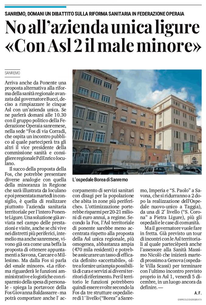COMUNICATO STAMPA – Il progetto di accorpamento delle ASL in Liguria, voluto dal presidente di Regione