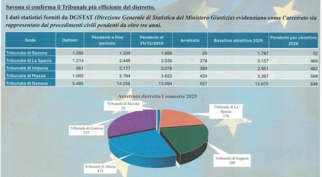 SAVONA SI CONFERMA IL TRIBUNALE PIU’ EFFICIENTE DEL DISTRETTO