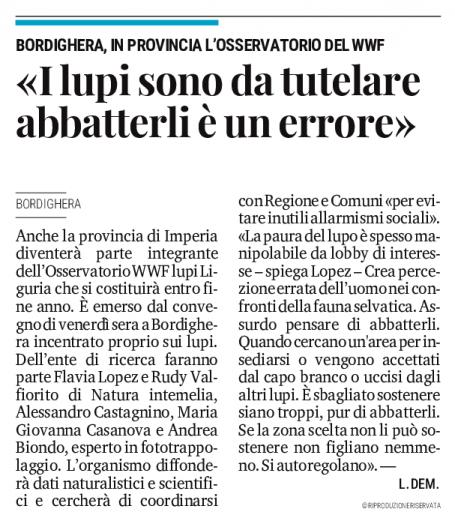 A quanto pare la presenza dei lupi si è spostata, non da oggi, dalle Alpi Liguri e Marittime, nei fondo valle dove è più facile, nei boschi, trovare cinghiali. Di conseguenza si sono avvicinati e raggiungono i paesi della prima collina, la periferia degli abitati. E su questo aspetto sono decine le segnalazioni da ponente a levante della provincia e nell’imperiese. Finora era accaduto che qualche cane venisse sbranato o qualche singolo animale domestico in prossimità di case di campagna. Mai più si pensava che raggiungessero l’ovile più prossimo alla costa.