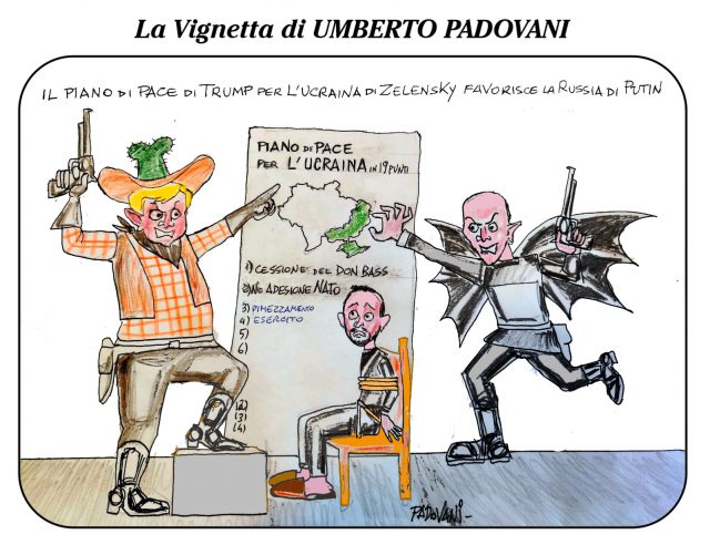 Il ministro Salvini con la compagnaIl direttore del quotidiano Domani, Emiliano Fittipladi, ha raccontato nella trasmissisone de La7 (ilMartedìi) cosa hanno scoperto indagando sulla nuova dimora romana di Salvini ministro e vice presidente del consiglioIl piano di Donald Trump (alias Pecos Bull) per l’Ucraina di Zelesky favorisce la Russia di Zar Putin (alias Dracula). Trump con la solita bal danza e prepotenza propone il piano di Pace in 19 punti a ad un Zelesky seduto e legato alla sedia mentre irromoevsulla scena Zar Putin (il vampiro) che sa già che gli verrà: 1) donato il Don Bass 2) la rinuncia dellUcraina all’entrata nella Nato 3) alla smilitarizzazione dell’esercito ucraino. ect, ect, ect fino al 19.