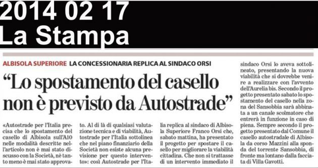 Per riuscire a salvare la faccia per aver sostenuto un progetto Aurelia bis assurdo ed inconcludente, i sindaci di Albisola Superiore Orsi prima e Garbarini poi, si sono “inventati” che la soluzione al “traffico in Albisola” sia quella di “girare” il casello di Albisola verso l’Aurelia bis!