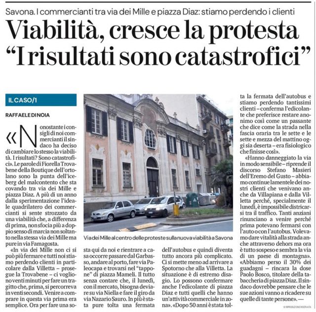 Coraggio iperbolico della Giunta Russo a chiudere quel piccolo tratto di corso Italia, piccolo ma nevralgico! I risultati catastrofici! Un applauso al coraggio ed alla determinazione! Boia chi molla!