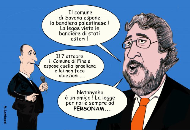 Ad ascoltare il video-voce di Vaccarezza lo hanno insultato e dileggiato. Persino minacce. Il bersaglio degli estremisti rossi era lui, da sempre il garante del buon governo, della moderazione, assurto a leader degli ‘amici di Israele’ in Liguria, sostenuto in questa fratellanza con i sindaci di Andora, Loano, Finale Ligure, il presidente della Provincia e sindaco di Calizzano. Ci sono le foto a testimoniare- unitamente ai rappresentanti dell’ambasciata di Israele a Roma, ambasciatore incluso- la solidarietà al popolo di Israele, al presidente moderato e pacifista Netanyau, accusato ingiustamente di geonocidio del popolo palestinese (70 mila vittime), della strage di 20 mila bambini, oltre a migliaia rimasti mutilati e orfani, mentre migliaia di detenuti palestinesi, anche della Cisgiordania, trattati peggio di animali come documentano fotoservizi di tv e media israeliani.