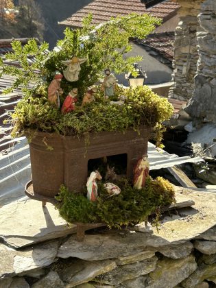 2/NATALE A CREPPO- Nei piccoli paesi e villaggi dell’entroterra ligure il Natale è l’occasione per esprimere grande fantasia ed amore per le antiche tradizioni. Chi si avventura tra le case in pietra intersecate da vicoli a zig zag rimane stupito nel vedere come ogni oggetto sia stato utilizzato per festeggiare le festività natalizie. Creppo, a prima vista spopolato, rivive con i presepi e con i babbi Natale. Una cassetta, una zucca, una stufa, un sedile in pietra, un arco, una fontanella sono stati addobbati e conferiscono una magica atmosfera. Chi vuol provare qualcosa di nuovo e di autentico e prepararsi al Santo Natale è invitato a passeggiare tra le antiche vie, soffermandosi per una preghiera od un semplice pensiero verso il cielo.