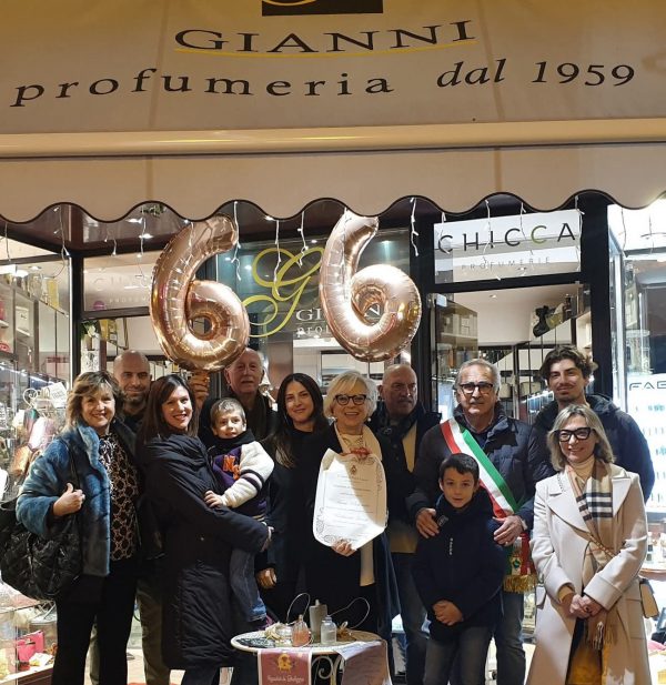 Post del sindaco di Pietra Ligure, Luigi De Vincenzi – A ricevere il meritato riconoscimento, la titolare Anna Maria Pastorino insieme al fratello Piercarlo, circondati dall’affetto gioioso di figli e nipoti e amici. Una festa davvero speciale per un traguardo importante. Alla “Profumeria Gianni” vanno i complimenti e gli auguri miei personali, dell’assessore alle attività produttive Cinzia Vaianella, dell’assessore Marisa Pastorino, nella sua doppia veste di nipote di nonno Gianni e nonna Marisa e amministratore, e di tutta l’amministrazione comunale – ha commentato il Sindaco Luigi De Vincenzi.Una grande storia familiare nata nel 1959, con l’ampliamento dell’originale attività di parrucchiere di nonno Gianni, e sempre cresciuta e oggi portata avanti da Anna Maria. Una storia di successo, nella sede storica di via Matteotti /piazza San Nicolò, cuore pulsante del centro storico, che ha accompagnato passo dopo passo generazioni e generazioni di pietresi, diventando, attraverso proposte di prestigio e raffinati prodotti all’avanguardia delle migliori marche, punto di riferimento per lo stile, la cura della persona e l’amore per il bello per un’intera comunità.