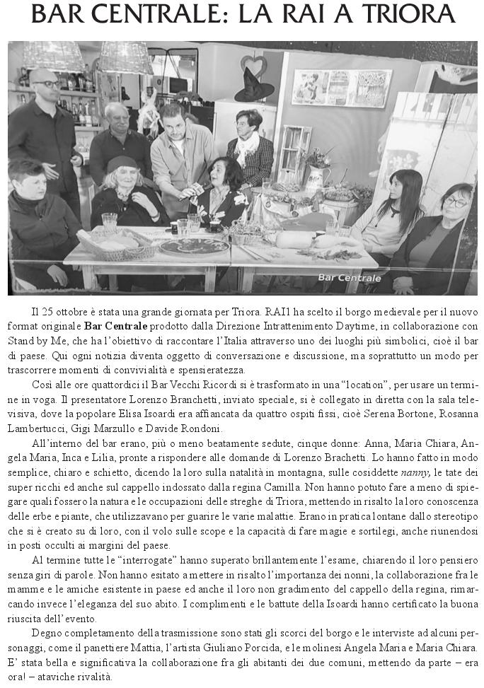 L’articolo è tratto dall’ultimo numero de Le stagioni di Triora che è assai più di un ‘giornalino’, unico esempio, senza dubbio, di un periodico che ha raggiunto, con cadenza mensile, il XXXIV, anno di pubblicazione.