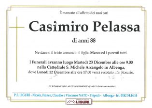 La Messa funebre, per Renzo, si è svolta nella cattedrale San Michele di Albenga. La salma è stata tumulata nella tomba di famiglia a Peagna di Ceriale dove hanno vissuto per 60 anni i nonni Francesca (Cichetta) Porro e Pietro (Peantugnin) Pelassa il cui figlio (morto giovane) aveva sposato Emilia, mamma di Renzo.