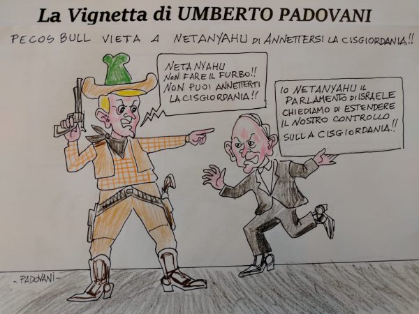 Pecos Bull (alia Trump) vieta a Netanyahu di annettersi la Cisgiordania e nega la richiesta anche da parte a dal Parlamento di Israele! Commento: La prepotente richiesta di Netanyahu è scorretta perché fortemente assurda !