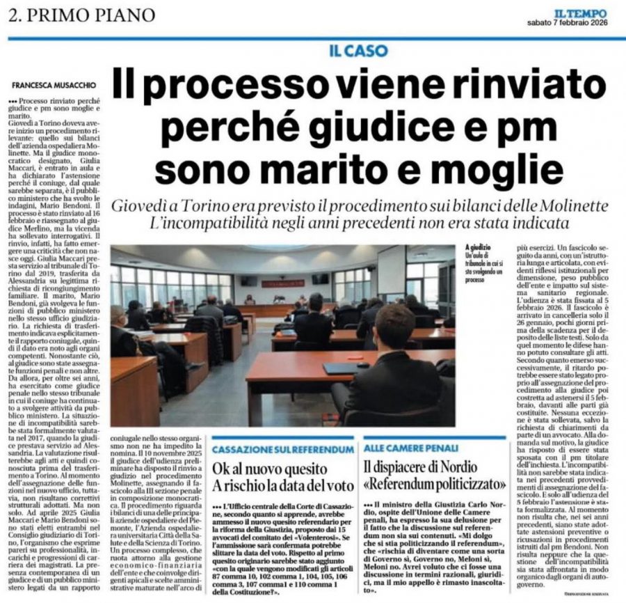 ARTICOLO DI SABATO 7 FEBBRAIO 2026 PUBBLICATO DA IL TEMPO-
