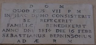 A memoria dell’evento, sulla facciata del palazzo è stata posta questa iscrizione lapidea, che ricorda il Papa e il padrone di casa, Sebastiano Berninzoni: