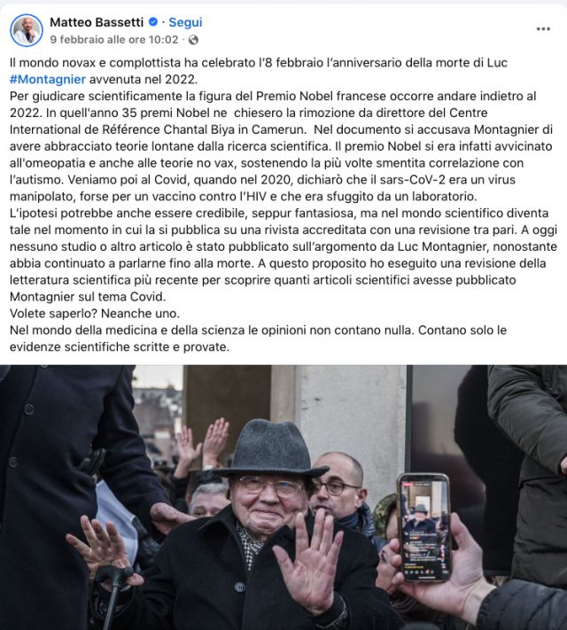 RICEVIAMO – L’avvocato Tiziana Vigni replica a Matteo Bassetti che sui social attacca il Premio Nobel Luc Montagnier.