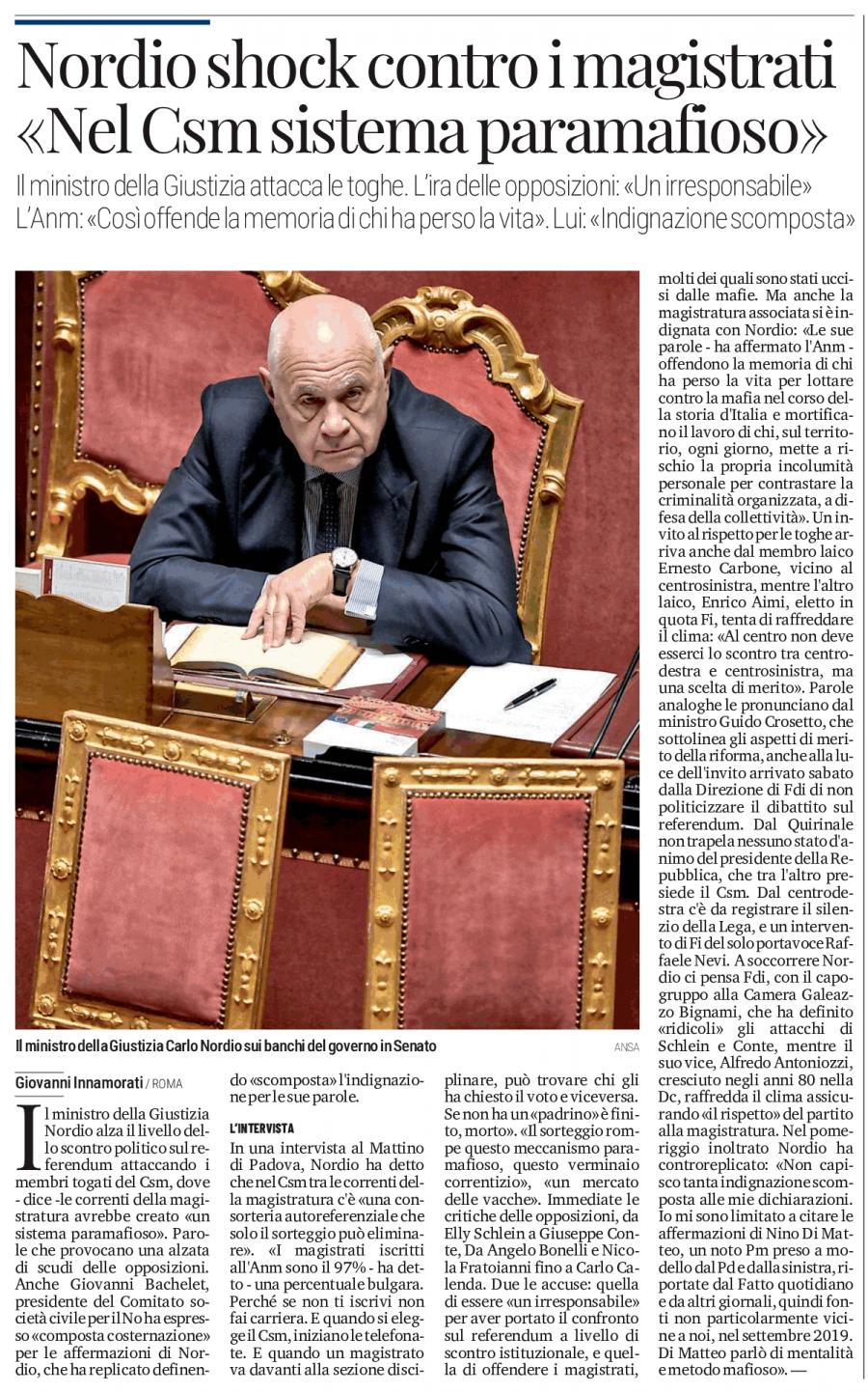 2/IL SECOLO XIX DEL 16 FEBBRAIO 2026. IL MINISTRO DELLA GIUSTIZIA, EX PM A VENEZIA, DENUNCIA: