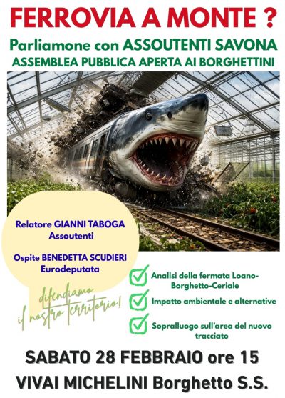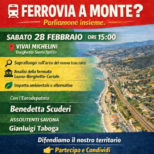 “Cosa accadrà al nostro territorio con il nuovo tracciato ferroviario? Quale sarà l’impatto ambientale e come cambierà la mobilità tra Loano, Borghetto e Ceriale? Ti aspettiamo per un incontro di approfondimento e un sopralluogo sull’area interessata. Un’occasione fondamentale per capire, confrontarsi e difendere il nostro territorio”.