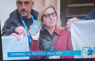 mobilitazione per il rinnovo del contratto di lavoro scaduto il 1 aprile del 2016 con un flash mob davanti all’Ariston. I giornalisti hanno esposto degli striscioni con la scritta: “Giornalisti senza contratto da 10 anni. È ora di cambiare musica“. «I giornalisti sono lavoratori come tutti gli atri. A volte facciamo fatica ad arrivare a fine mese, soprattutto i lavoratori autonomi, le partite Iva e i collaboratori coordinati e continuativi», hanno aggiunto Matteo Dell’Antico (segretario Alg), Milena Arnaldi (presidentessa Alg) e Tommaso Fregatti (presidente Odg Liguria).