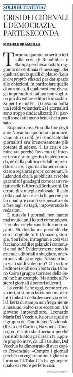 L’analisi della lunga crisi dei quotidiani in Italia. Il direttore del Decimonono, fondato il 25 aprile 1886 (140 anni) a Genova, ha scritto due editoriali. “Perchè nessuno vuole comprare i grandi giornali. Crisi dei giornali e democrazia”. Il Secolo XIX, che con la sua autorevolezza, aveva raggiunto una media domenicale di 180 mila copie vendute in edicola e abbonamenti, 140 quella giornaliera.