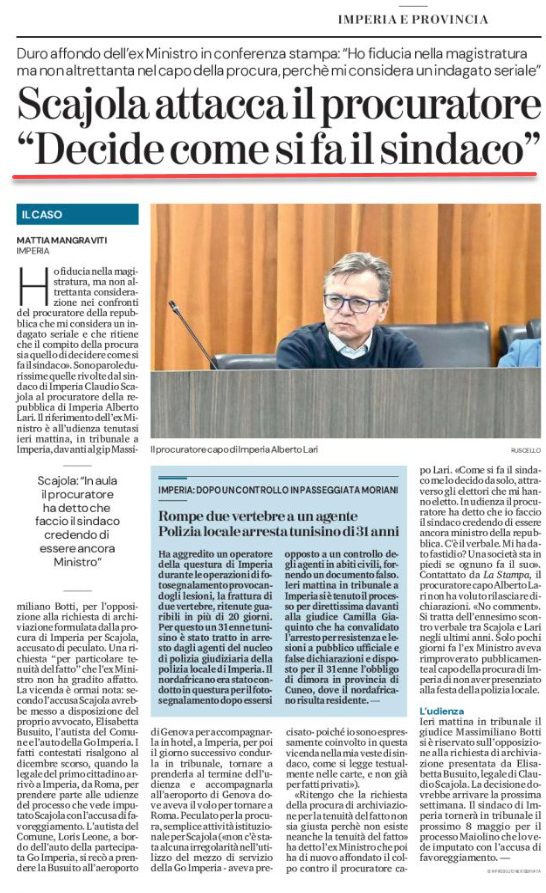LA STAMPA EDIZIONE IMPERIA SANREMO-