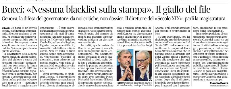 È stata costruita una narrazione che attribuisce a me, al mio staff di comunicazione e alla Regione Liguria comportamenti illeciti, scorretti o addirittura intimidatori. Non c’è nulla di tutto questo. Non ci sono dossieraggi, non esistono black list di giornalisti, non esistono vademecum occulti, non esiste alcuna attività organizzata volta a condizionare l’informazione.