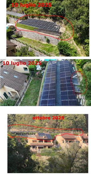 TRUCIOLI.IT ha verificato che la ditta che ha installato l’impianto fotovoltaico, citata nell’ esposto è Ferrari Innovation (Villanova d’Albenga); il tecnico che ha presentato la SCIA in sanatoria è l’Ing. Michele Calcagno. La proprietà in cui sono stati eseguiti tutti i lavori è Gerasimov Sergey (cittadino russo) in Loc. Vallone.